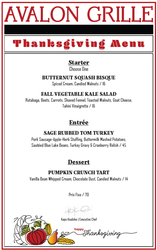Avalon Grille - (310) 510-7494 - Open Thanksgiving Day from 12-8 pm. Thanksgiving Menu.